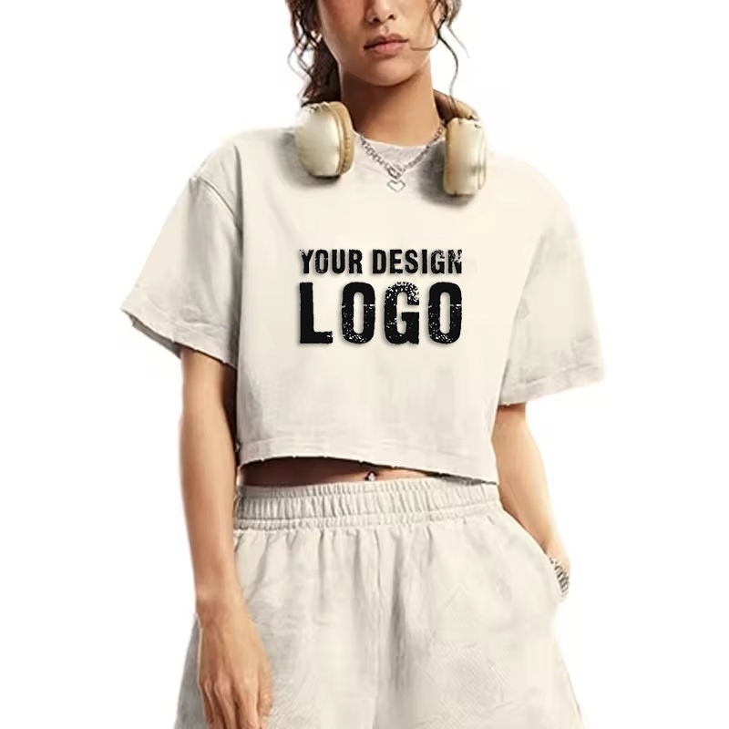 Haut de sport décontracté d'été 305G uni pour femme, style streetwear décontracté, teinture boue, coupe courte et ample, T-shirt sport pour femme