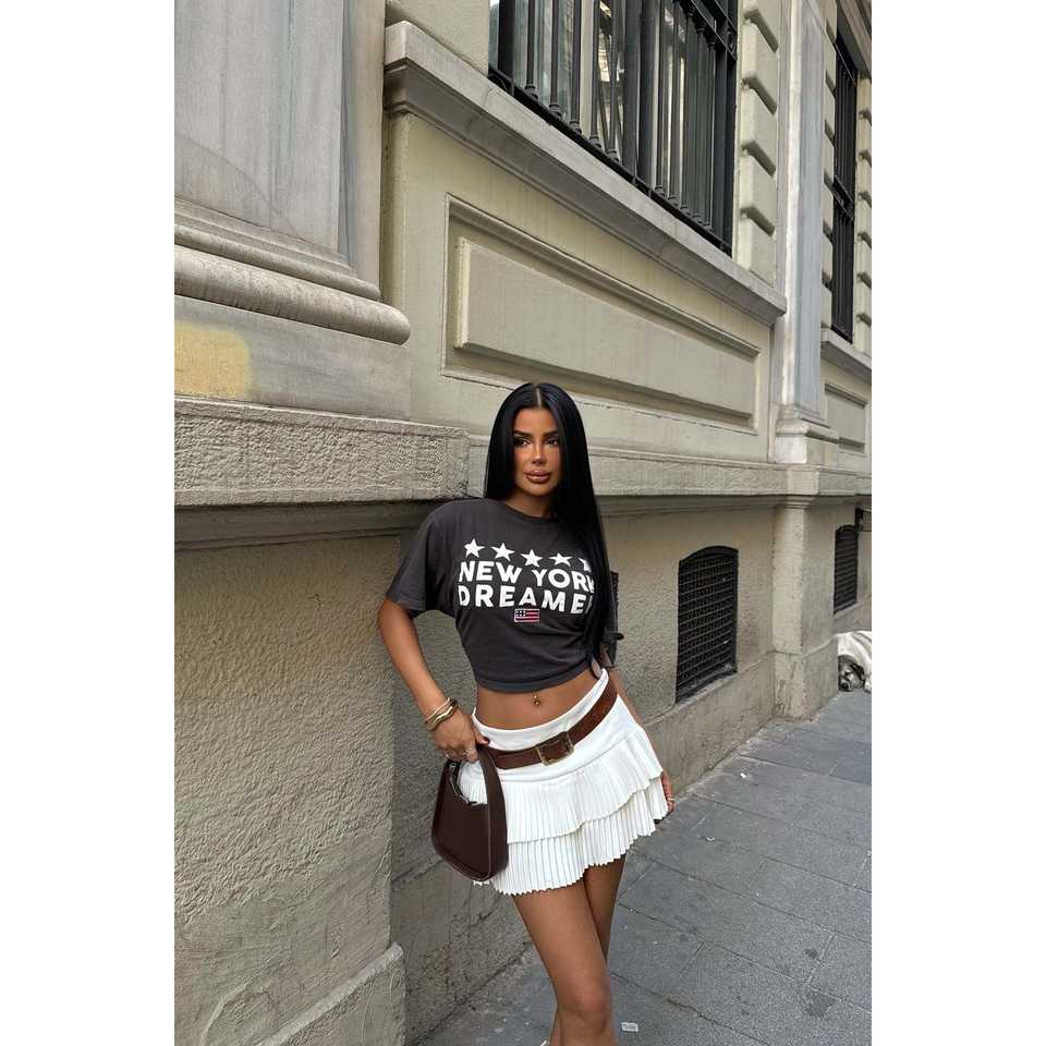 Summer Casual White A-Line Mini Skirt Embroidered Print XS Size Straight Cut Natural Waistline Made Spandex Silk Knitted Fabric