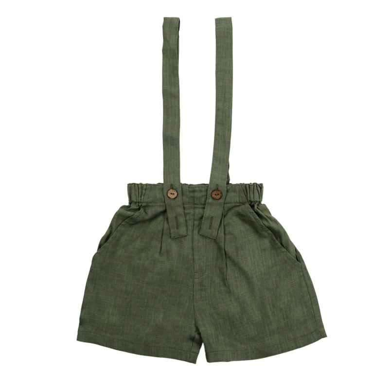 Summer Children's Linen Clothing Kids Boys Military Green Kid Boy Suspender Trousers
