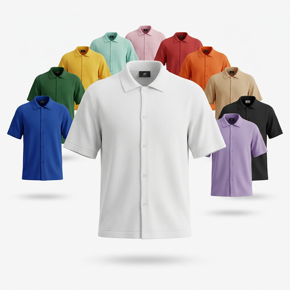 Chemise habillée d'été à manches courtes boutonnée, sur mesure, décontractée, en mélange de coton doux et respirant, pour le bureau