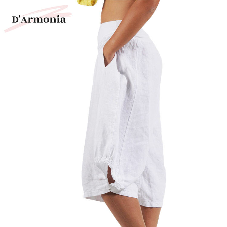 Nom du produit:Fabricants de vêtements d'été pantalons blancs à jambes larges en lin pour femme
