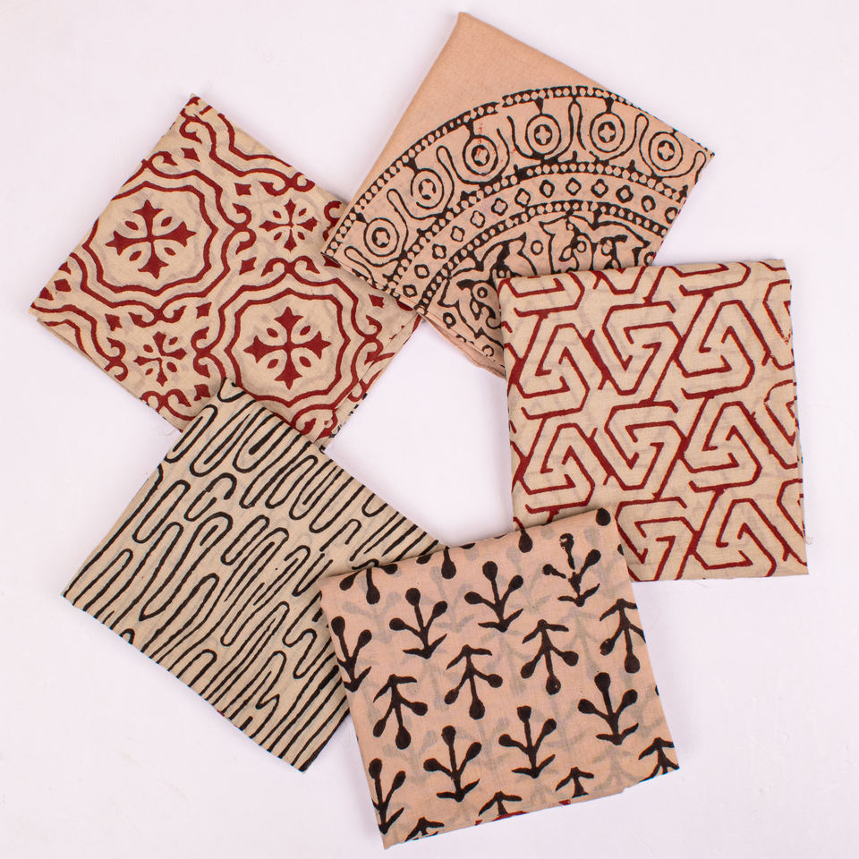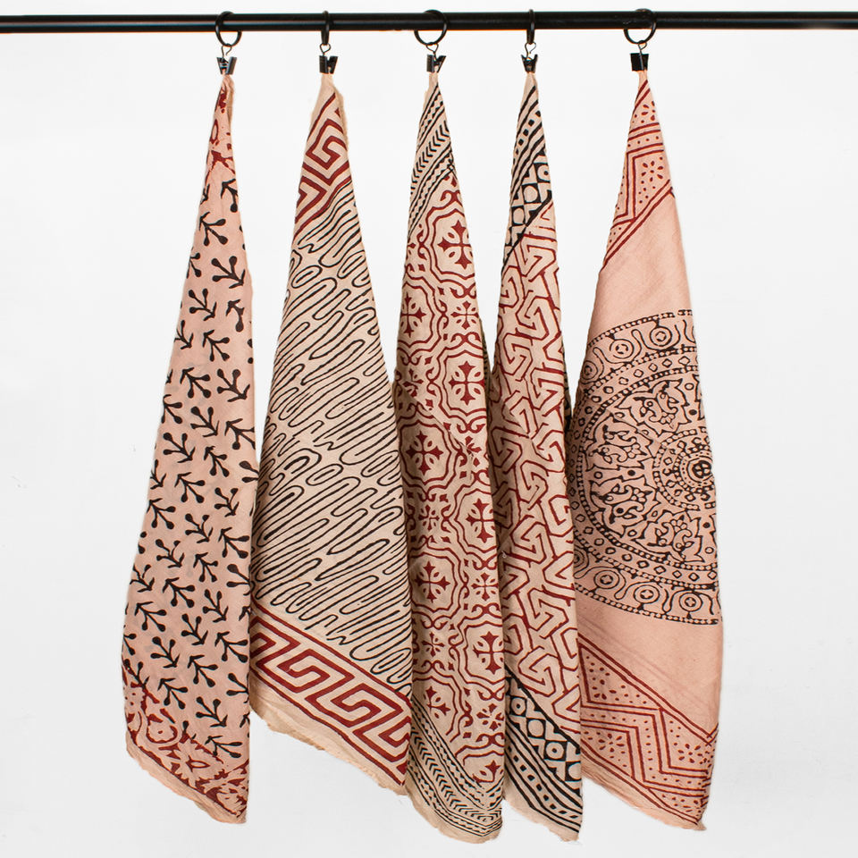 Collection d'été Craftjaipur : Ensemble de bandanas imprimés en toile de coton écologique style Bagru, faits main, luxe vintage pour cheveux