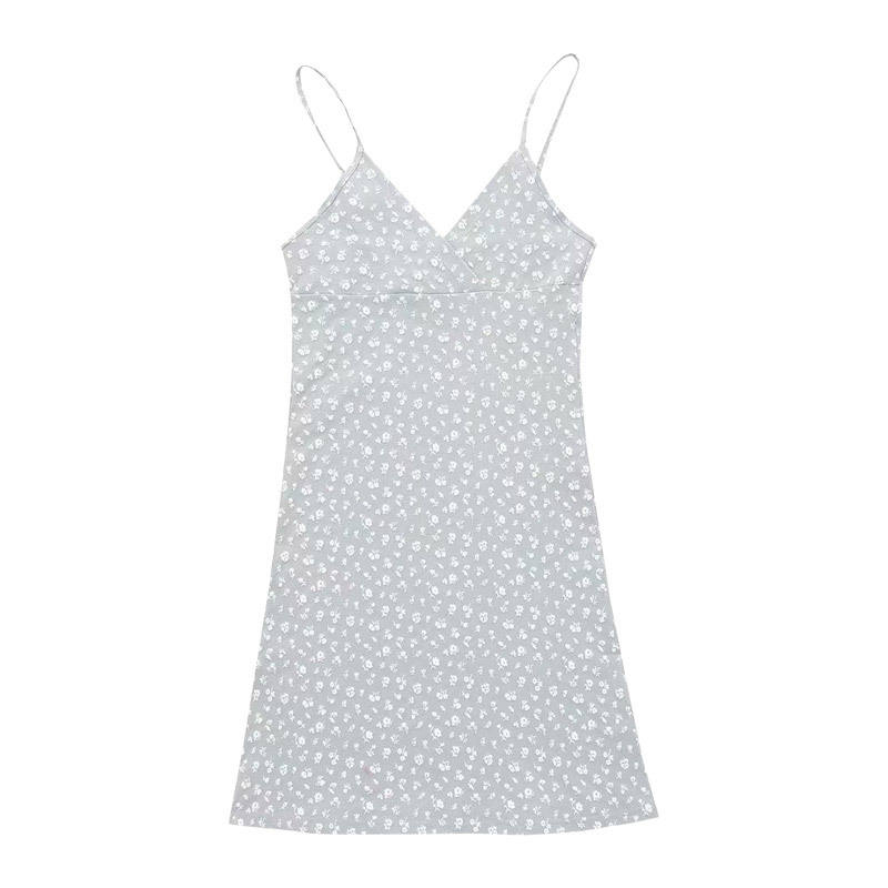 Collection d'été : Robe Halter Imprimée à Motif Floral, Col en V, Taille Cintrée, Couleur Unie, Style Rétro Décontracté
