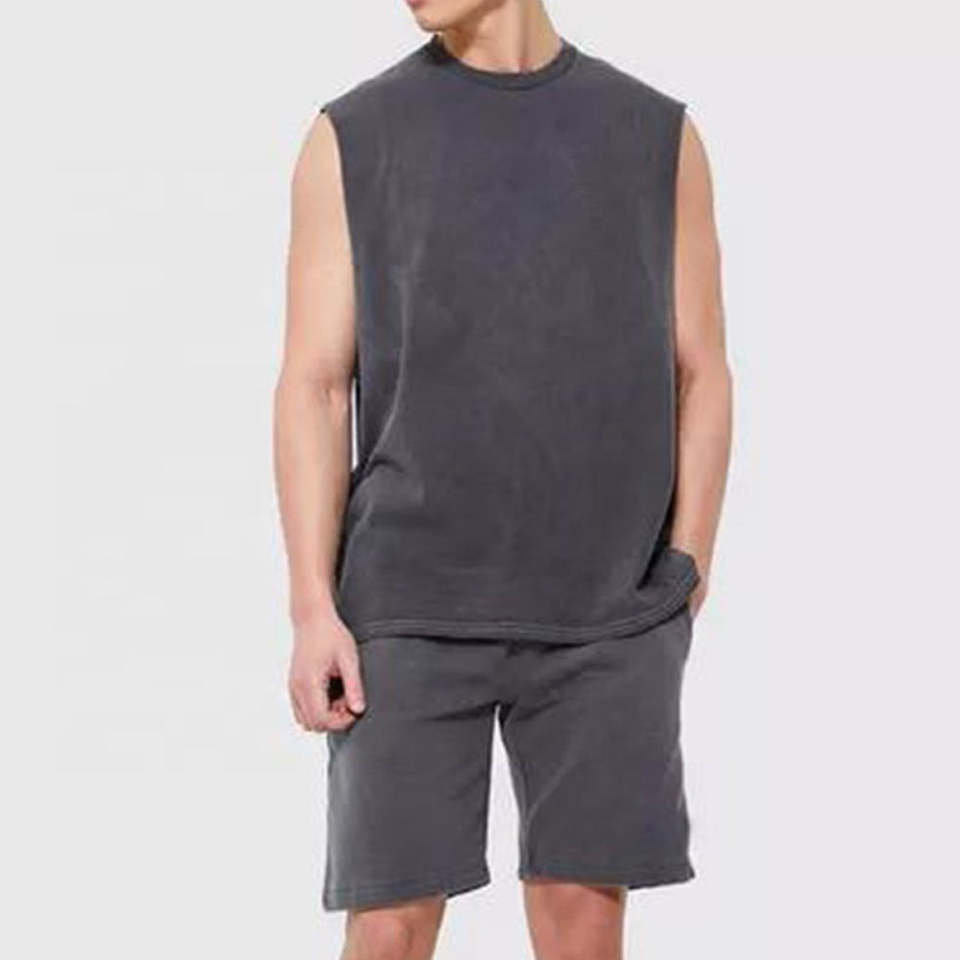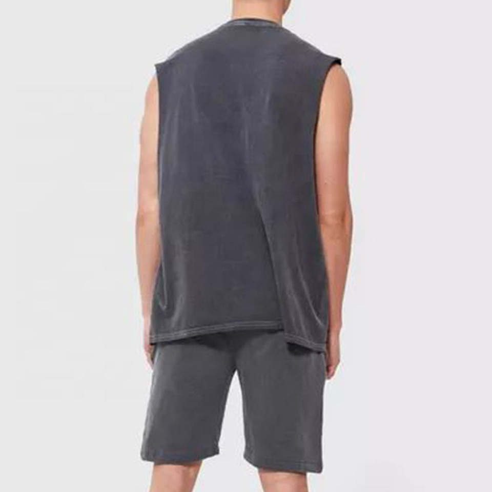 T-shirt sans manches en coton 100% tricoté avec logo personnalisé imprimé DTG pour homme, avec ourlet coupé et lavage à l'acide, style PUNK
