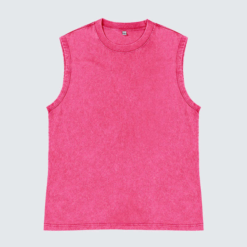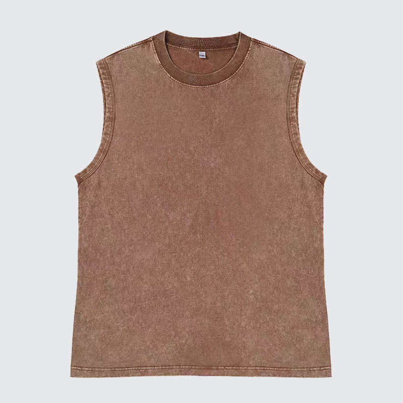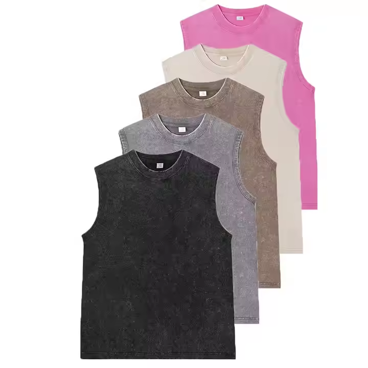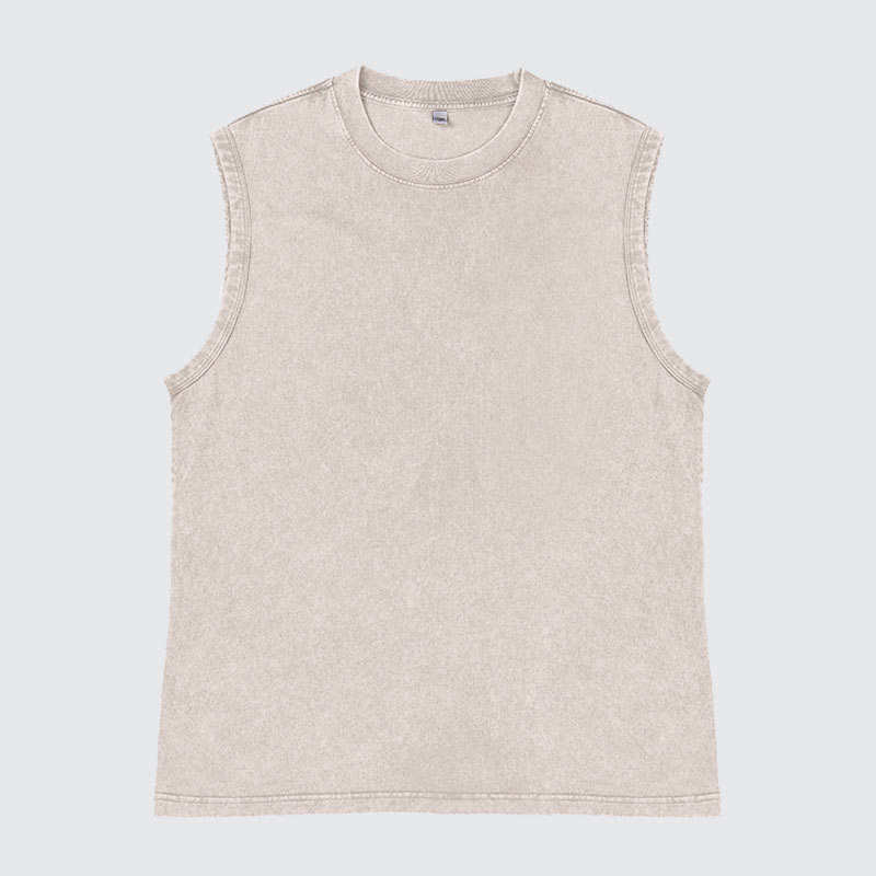 T-shirt sans manches en coton tricoté 100 % personnalisé avec logo imprimé par transfert thermique, style punk délavé à l'acide, imprimé animalier pour homme – Collection été