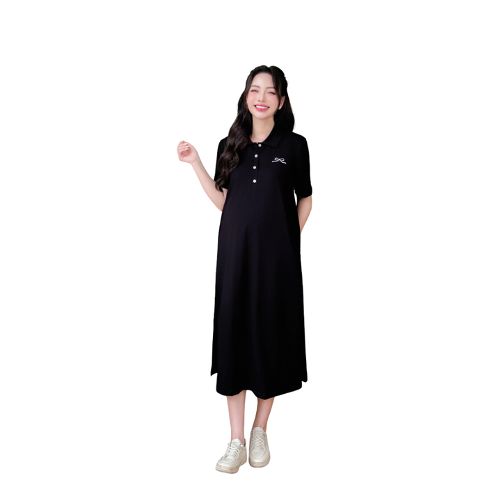 Summer Eco-Friendly Casual Dress for Maternity Soft Cotton Breathable Sweat-Absorbent Anti-Shrink Bow Embroidery Weave-V1177