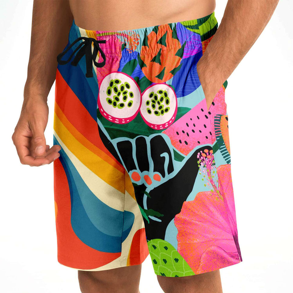 Summer Fashion Printing Heat-Transfer Canvas 100% Cotton Eco-Friendly Mens Shorts Elastic Waistband High Quality Custom Made