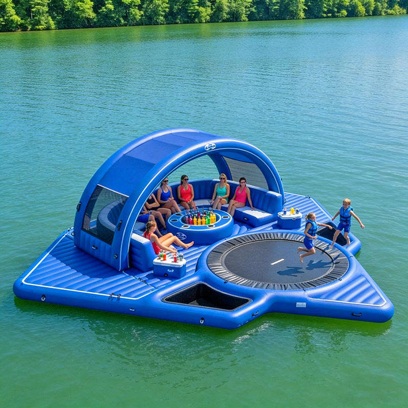 Plateforme Gonflable Flottante d'Été pour Parc Aquatique, Combo Amusant avec Canapé, Tente et Trampoline Intégré en PVC, pour 5 à 10 Personnes