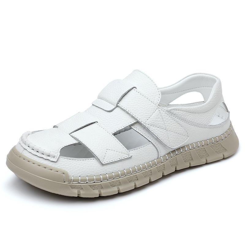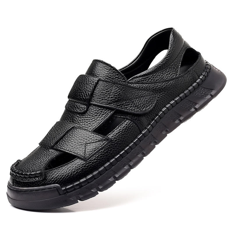 Sandales d'été en cuir véritable pour hommes, à bout ouvert, avec empeigne en maille, légères, soutien de la voûte plantaire, décontractées, à semelle souple et respirantes, faciles à enfiler