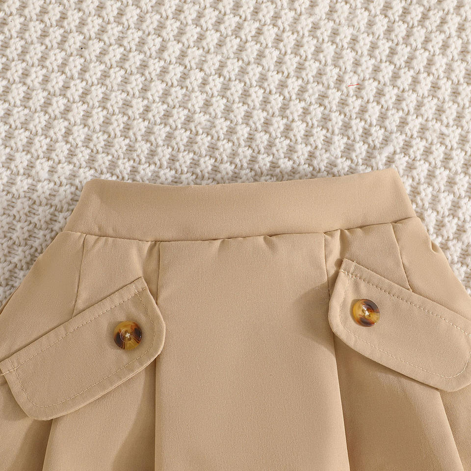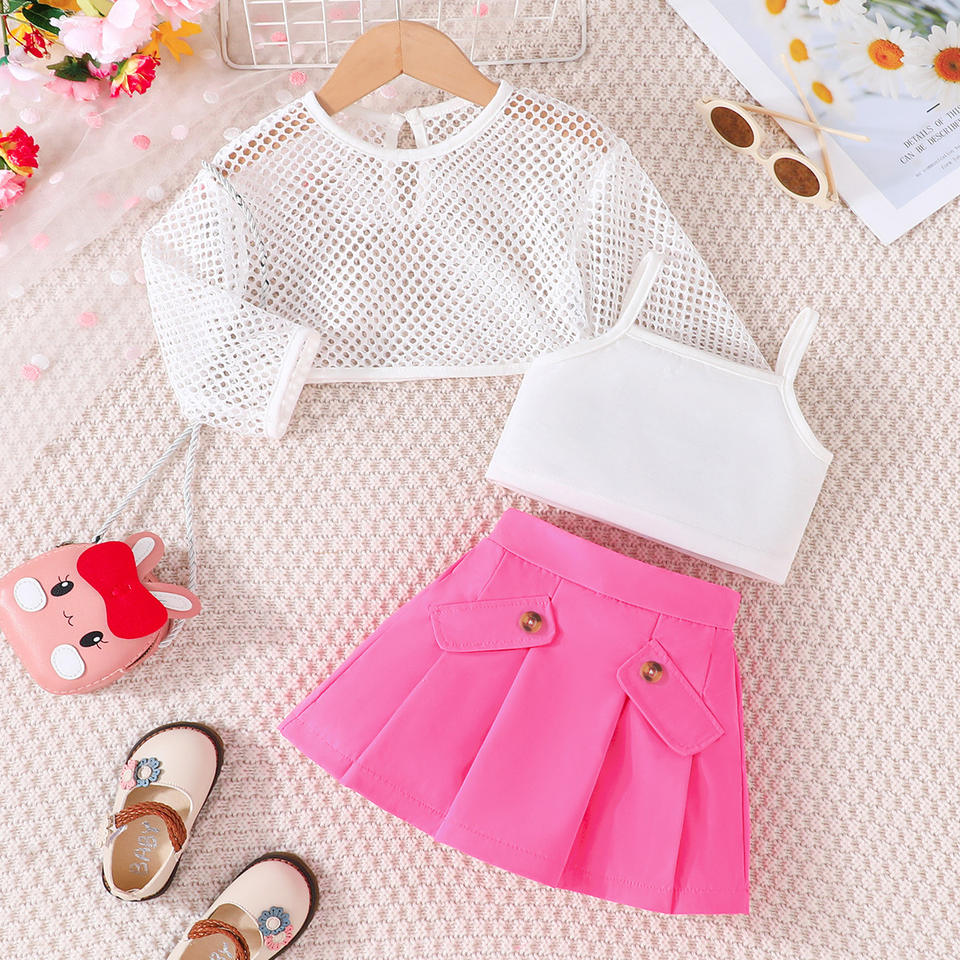 Ensemble de vêtements d'été pour filles en maille à manches longues et jupe plissée trois pièces pour filles