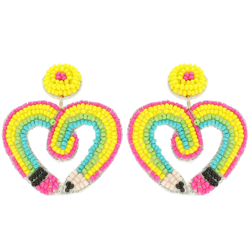 Ensemble de boucles d'oreilles d'été en perles de verre, brodées sur 3 couches, longues, pour soirée, style indien Tyntra, par MD HANDICRAFTS