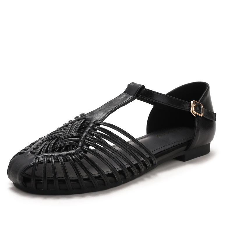 Sandales romaines tissées à la main pour femmes, style été, ajourées, plates, à bride unique, pour usage quotidien