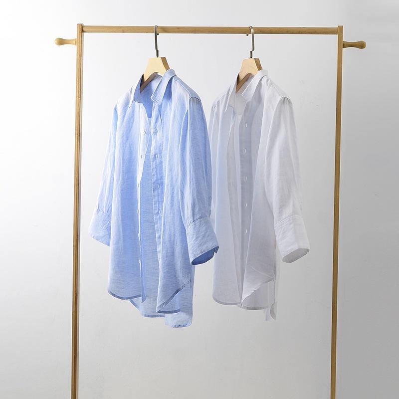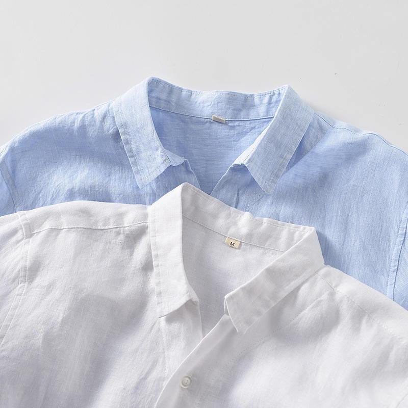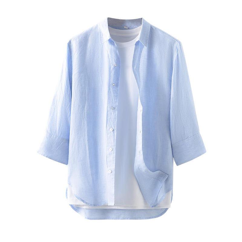Chemise d'été pour homme en coton et lin, col mandarin, manches courtes, respirante, douce et de haute qualité