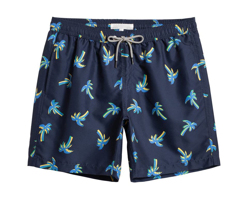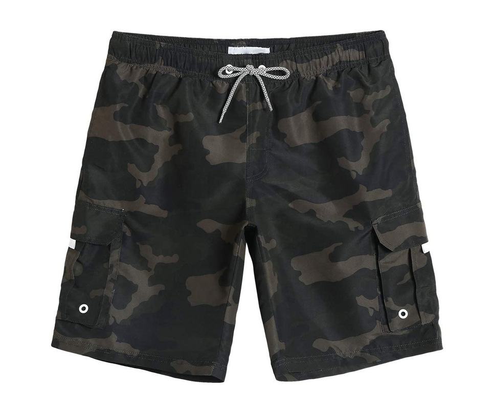 Short de bain respirant en polyester pour homme, taille mi-haute élastique avec cordon de serrage et poches, imprimé personnalisé, style urbain estival