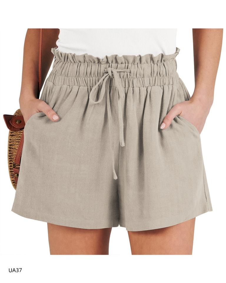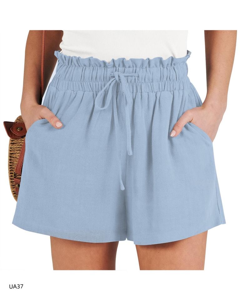 Shorts d'été à taille haute et volants pour femmes, taille élastique avec cordon de serrage, shorts de plage amples, plusieurs tailles et couleurs