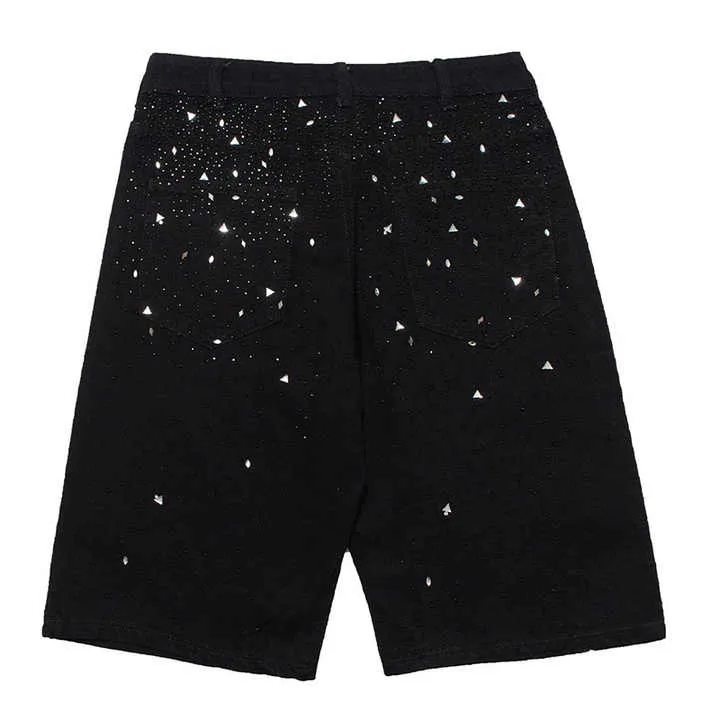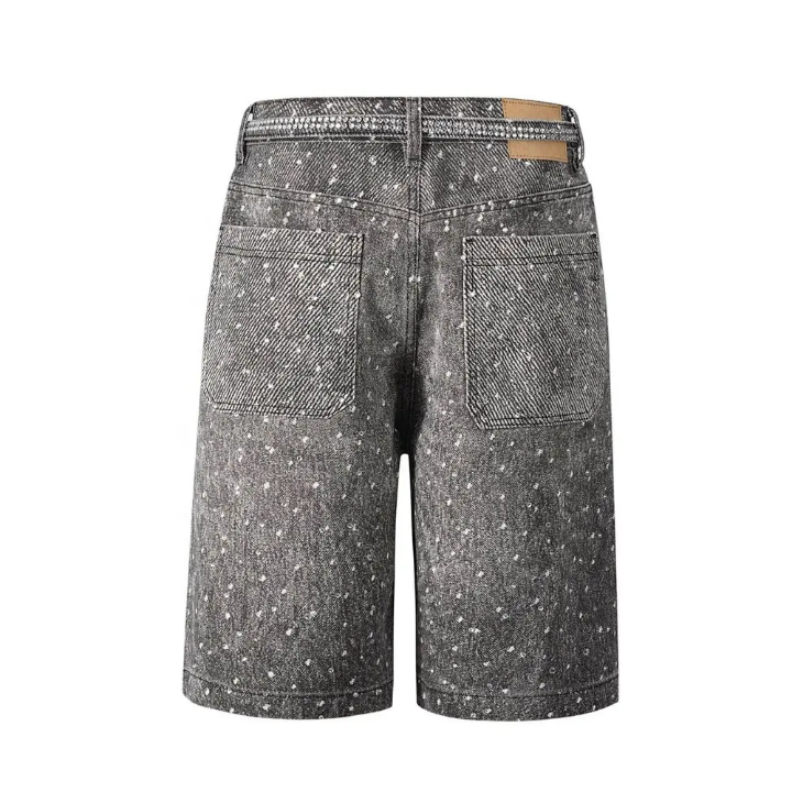 Shorts en jean pour hommes, style hip-hop d'été, délavés au soleil, avec strass, impression en relief personnalisée, délavés à l'acide, vente en gros