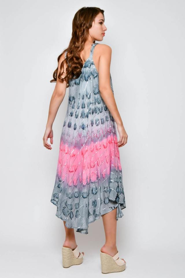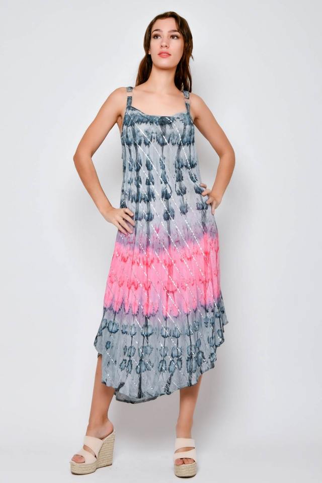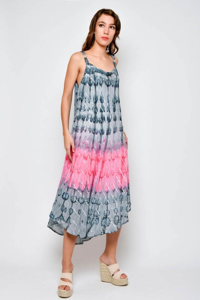 Summer Hot Collection Beach Wear Rayon Lurex Tie Dye Long Maxi Beach Wear Cover Up Dress For Women Square Neck Dress