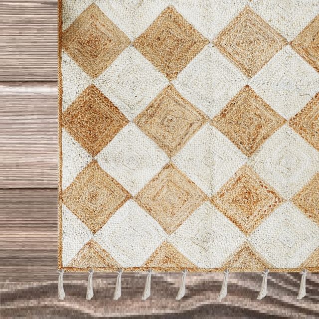 Tapis d'été Offre Spéciale Jute Rectangle Brodé Artisanal Tressé Design Scallop Tapis Naturel pour Maison Hôtel à Bas Prix