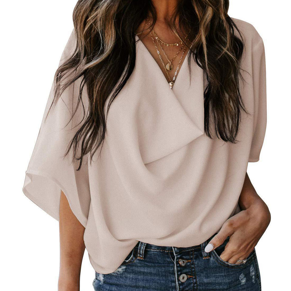 Summer Hot Sale New Women's Short Sleeve Chiffon Shirts Loose V-Neck Casual Tops Womens Tops and Blouses