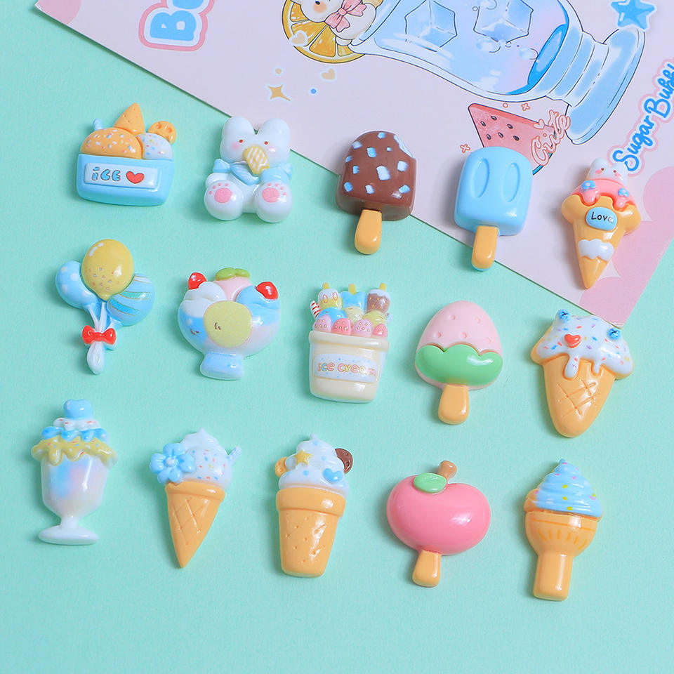 Summer Ice Cream Cartoon Glossy Surface Diy Cream Glue Homemade Phone Case Water Cup Stickers Hairpin Jewelry Resin Accessories