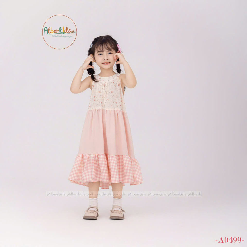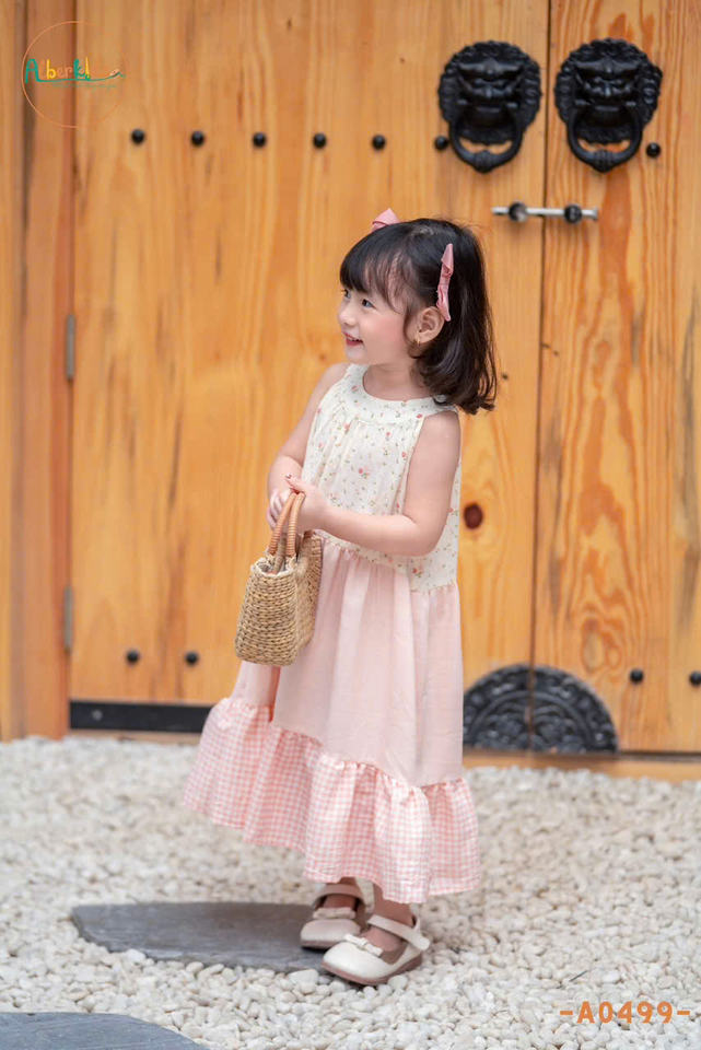Summer Infant Girls Casual Outfit Princess-Style Long Sleeveless Dress O-Neck Chest Bow Design Wholesale Children's Clothing