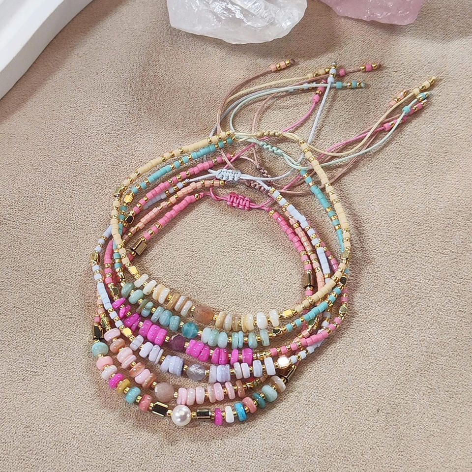 Bracelet d'amitié ajustable fait main en perles Miyuki et coquillages colorés pour femme et fille – Collection été