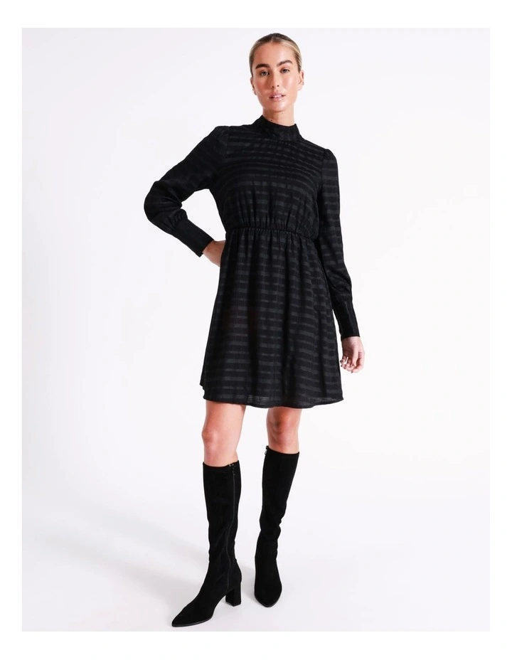 Robe tissée pour femmes d'été, vêtements d'automne, col rond personnalisé, manches longues, taille haute, poignets hauts, longueur au-dessus du genou