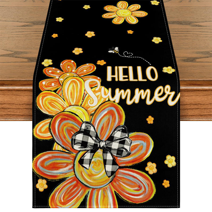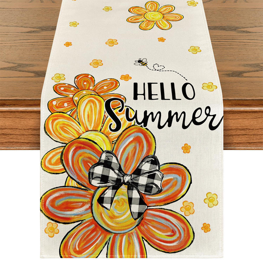 Chemin de table d'été motif citron, feuilles d'agrumes, décoration florale saisonnière pour cuisine et salle à manger, idéal pour la maison et les fêtes
