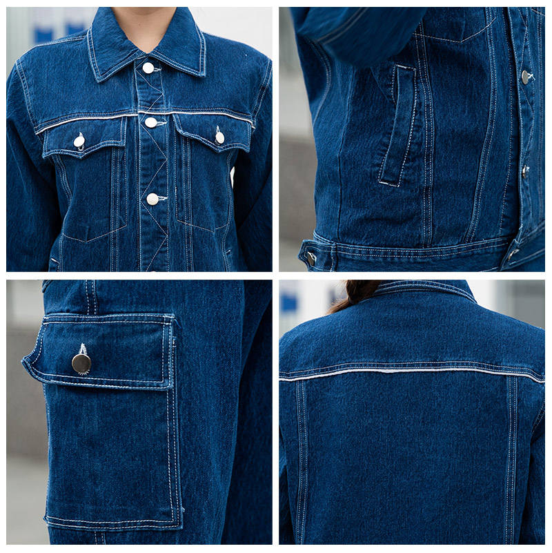 Combinaison de travail d'été à manches longues, vêtements de travail en jean, veste et pantalon avec bandes réfléchissantes