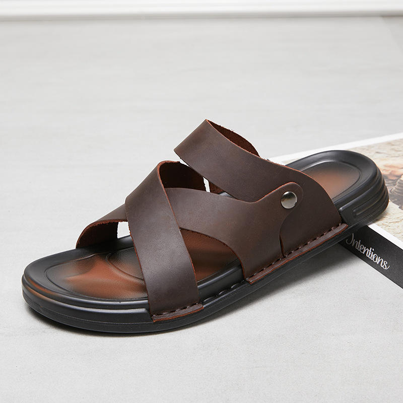 Chaussons d'été en cuir pour hommes avec semelle de haute qualité, respirants, frais, confortables, décontractés, cousus à la main, vente en gros d'usine