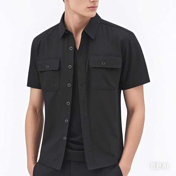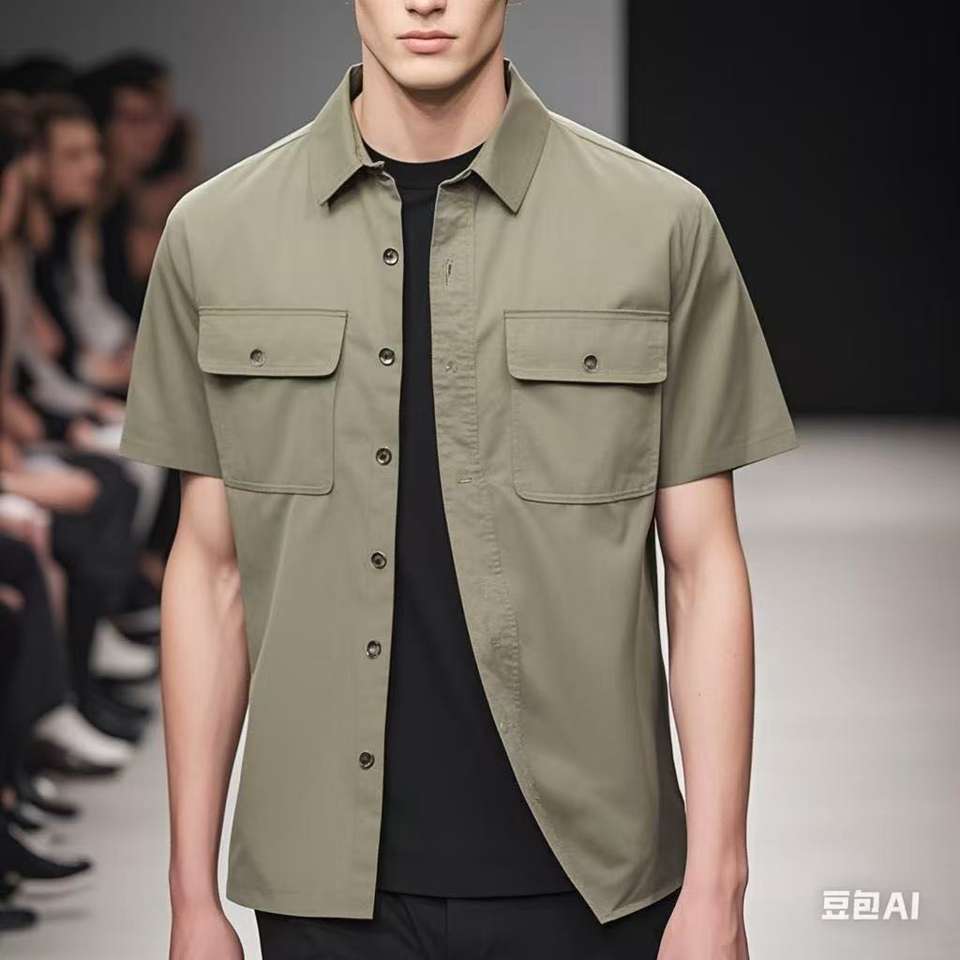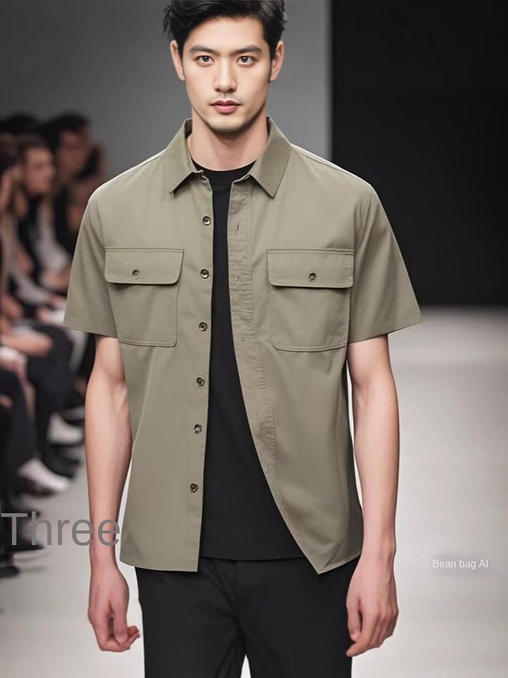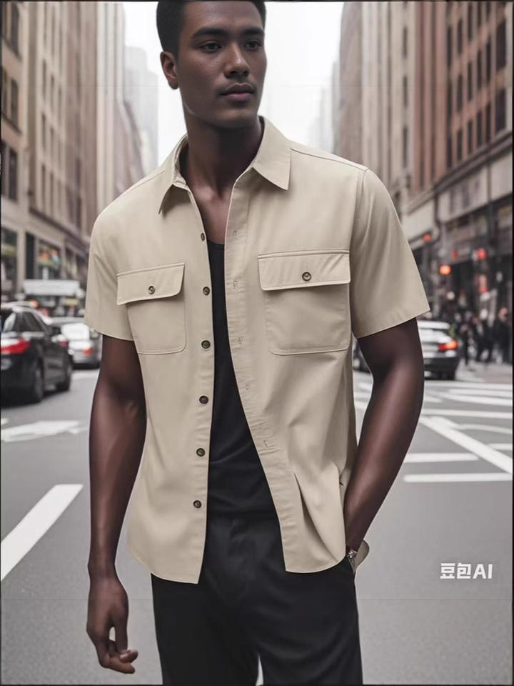 Chemise décontractée d'été pour homme en lin respirant à manches courtes perlée avec poche et traitement anti-repassage