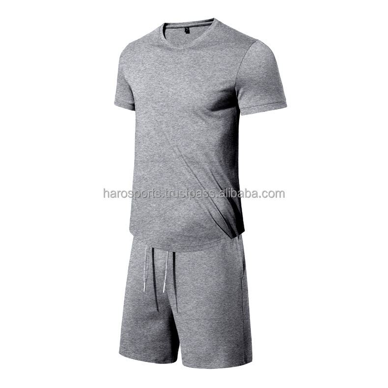 Ensemble de vêtements de sport pour hommes en deux pièces respirant pour l'été, t-shirt et short de sport en polyester/coton, kits de vêtements de sport personnalisés