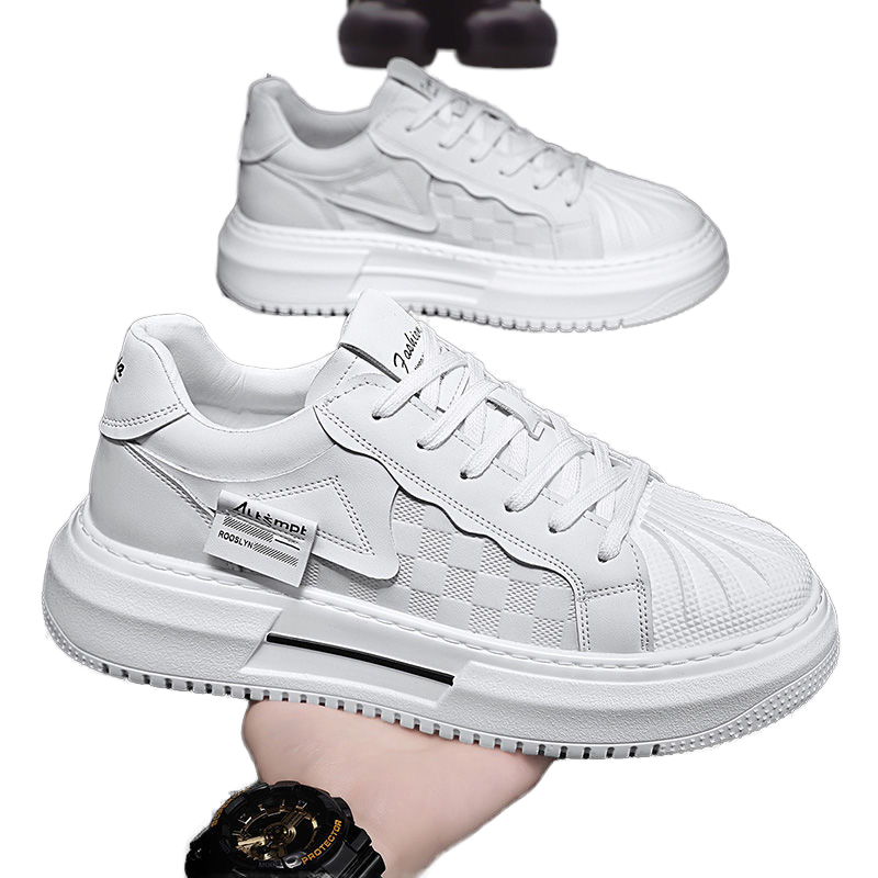 Chaussures de course pour hommes en maille respirante à lacets, bout rond, semelle épaisse, blanches