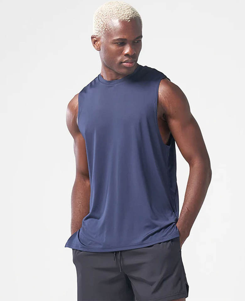 Débardeur de sport d'été pour hommes Débardeur à col en U à séchage rapide Débardeur en tissu côtelé pour hommes Débardeur en coton respirant Fitness extérieur