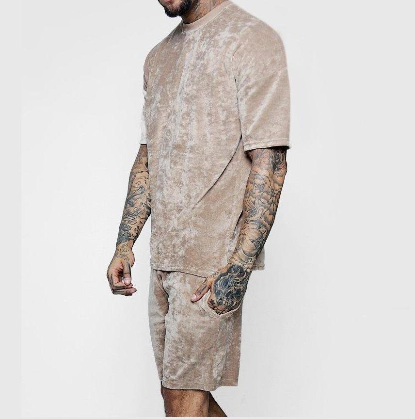 Ensemble de survêtement formel en velours pour homme, été, manches courtes, deux pièces, ensemble assorti en velours, respirant, 100% laine, RABUSH SPORTS