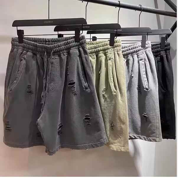 Short d'été pour hommes Vintage délavé à l'acide Coupe ample Personnalisé Coton éponge Solide Motif Imprimé Baggy Streetwears