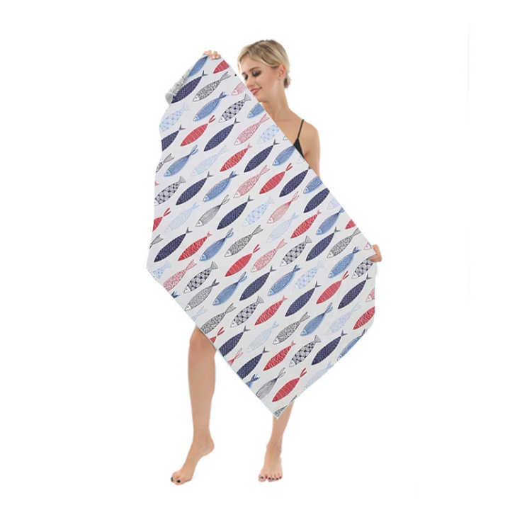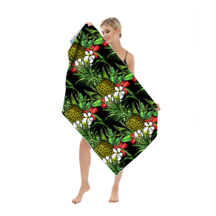 Serviette en microfibre d'été, imprimée en polyester, séchage rapide, hypoallergénique, serviette de plage, de sport en plein air, taille/design/forme personnalisable