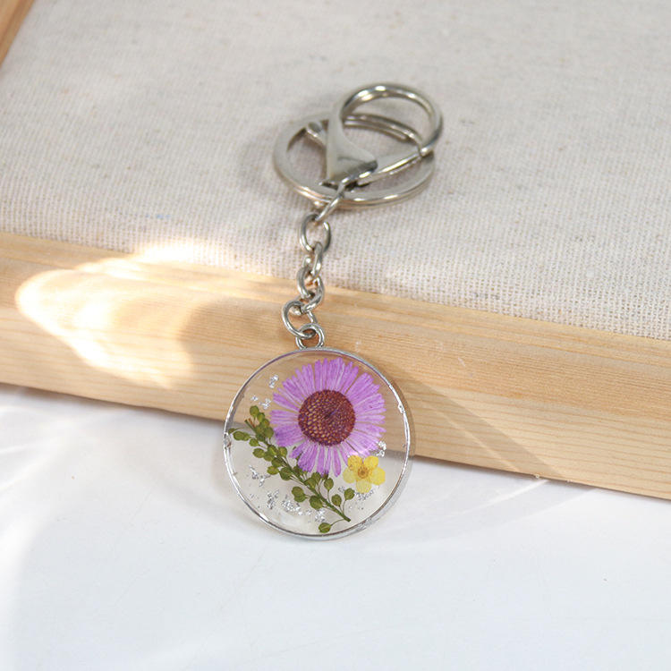 Nouvelle collection été : Porte-clés fleur séchée Série Dentelle de Maud'Amie, spécimen floral avec fermoir mousqueton