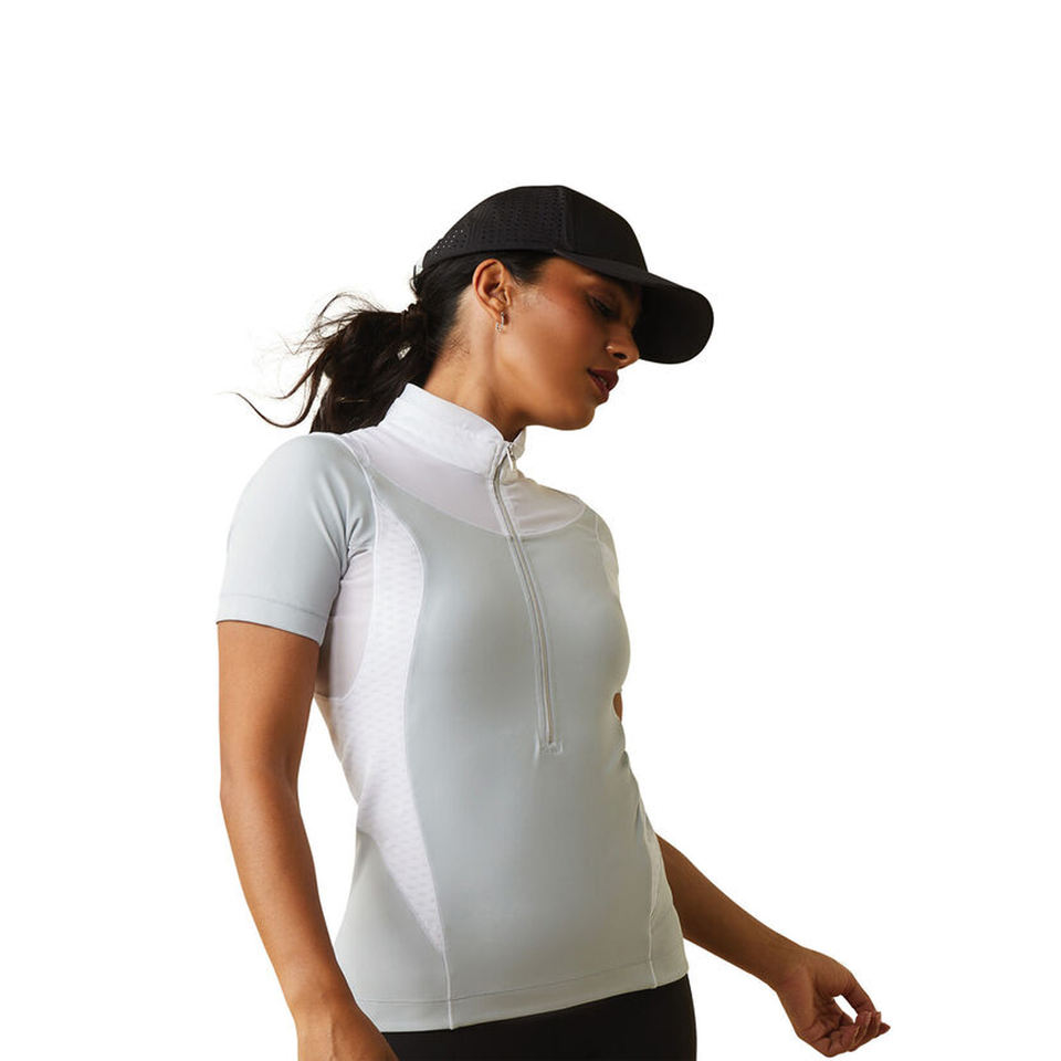 Summer New Full Mesh Equestrian Clothing Women Short Sleeve Equestrian Zip Tops Base Layer Horse Riding Show Shirt