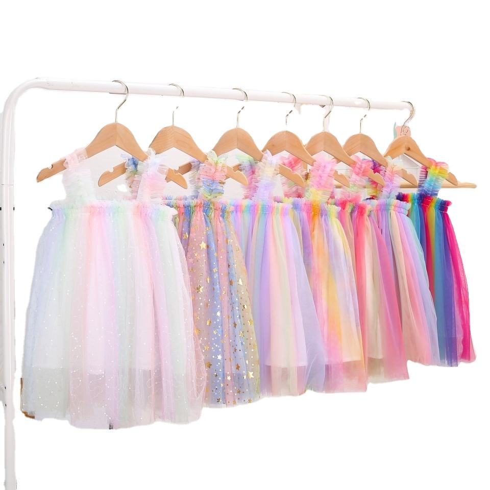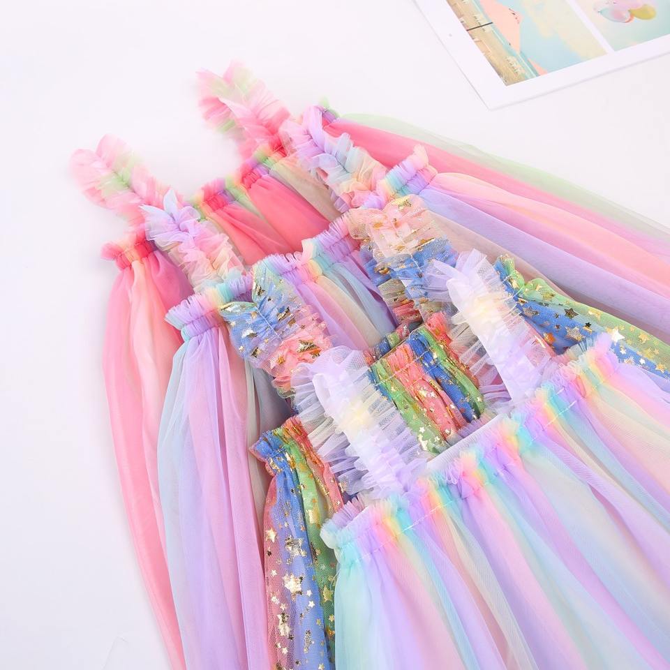 Nouvelle Robe d'été de haute qualité pour filles de 1 à 6 ans, jupe à bretelles en maille, robe mignonne et tendance, jupe tutu arc-en-ciel de princesse