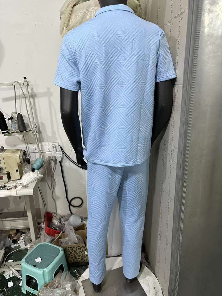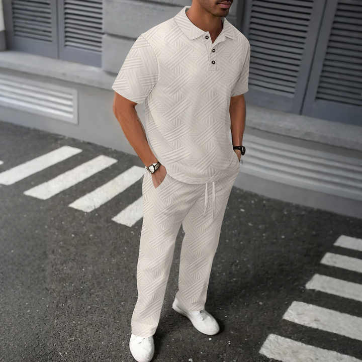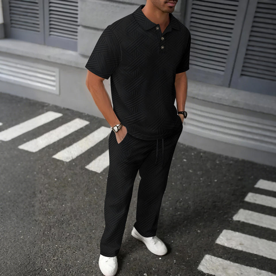 Ensemble deux pièces pour homme, polo à manches courtes et pantalon en jacquard uni, nouvelle collection été