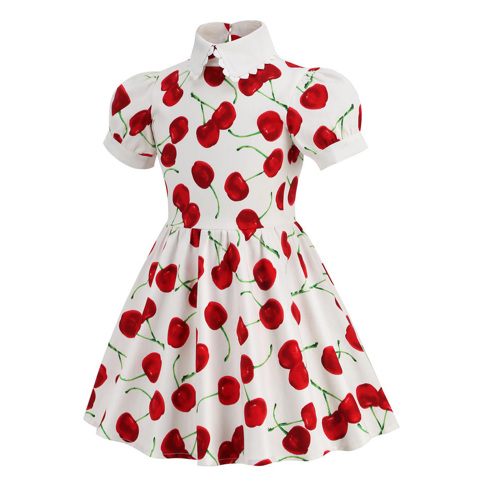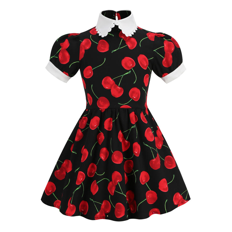 Summer New Style Swing Evening Party Wedding Prom Rockabilly 50s Cherry Print Office Wear Vintage Dresses For Children