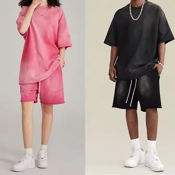 Ensemble short et t-shirt en coton délavé effet soleil pour homme – Qualité supérieure – Collection été