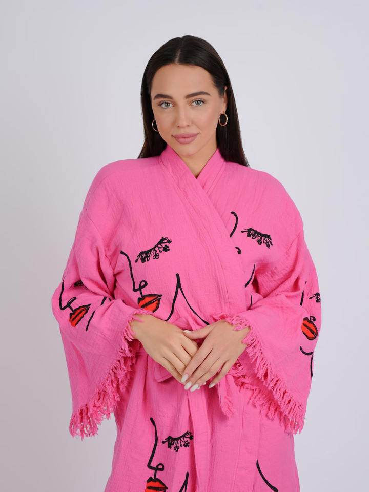 Robe d'été rose Broderie Vêtements de nuit de luxe et de créateur Kimono Peignoirs de bain au prix de gros