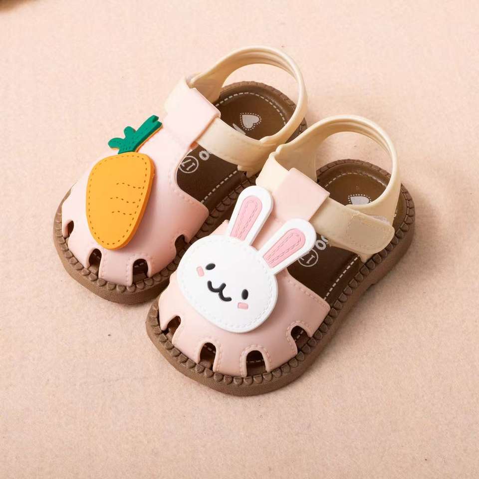 Sandales d'été pour filles, motif lapin et carotte, antidérapantes, chaussures plates pour enfants, semelles souples, sandales de plage pour tout-petits