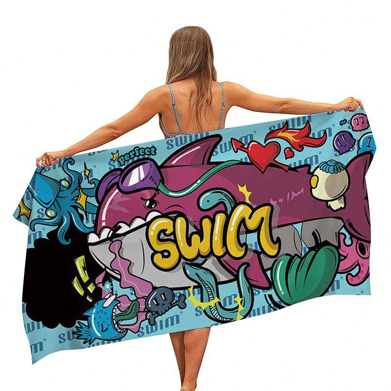 Tissu:Serviette de plage d'impression de bande dessinée de microfiber