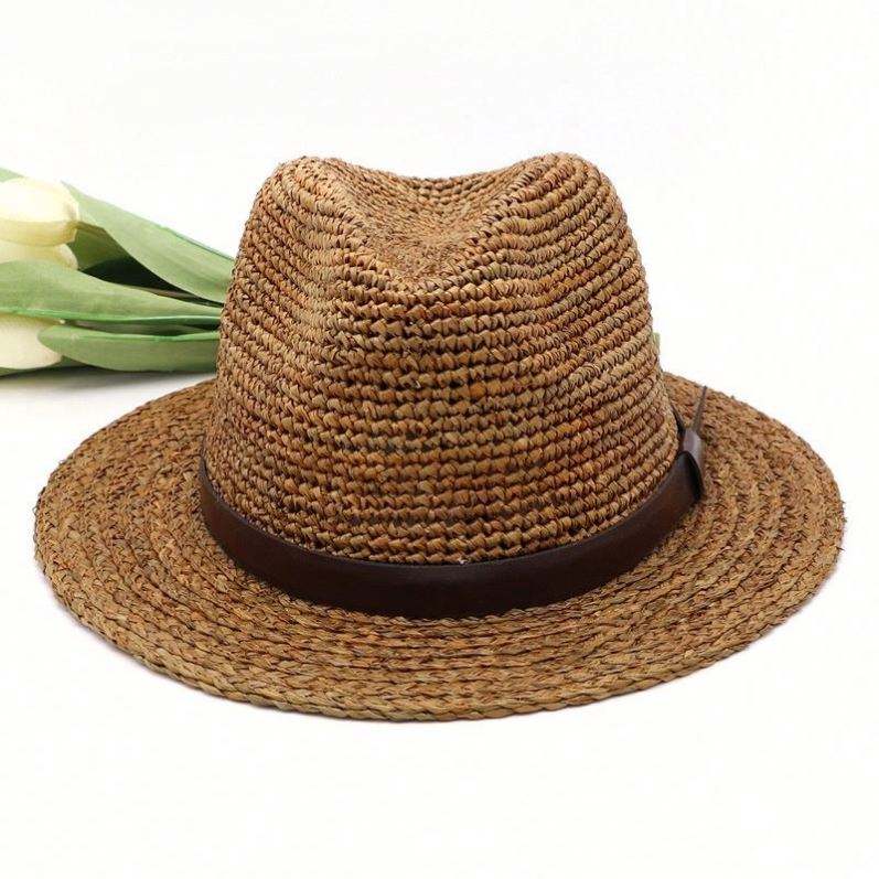 Chapeau de paille en raphia d'été tendance, vente en gros, protection solaire pour hommes et femmes, plusieurs grandes tailles, chapeau Panama