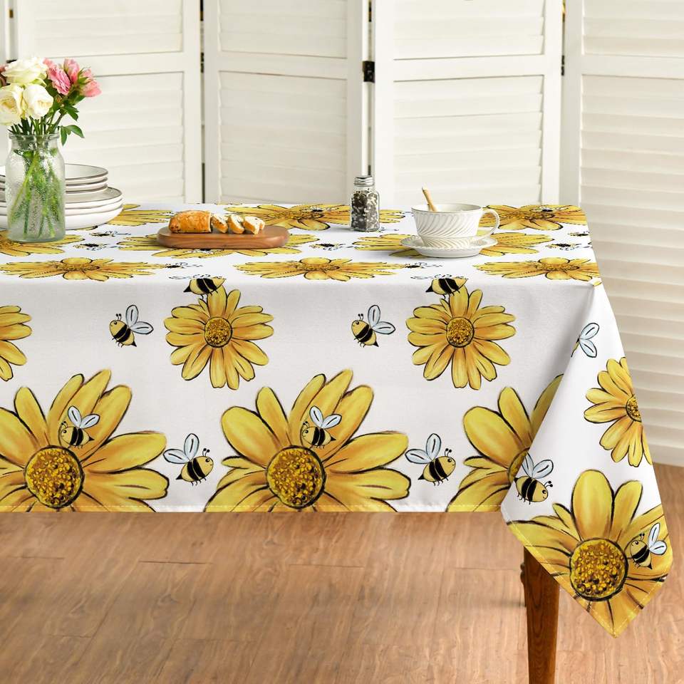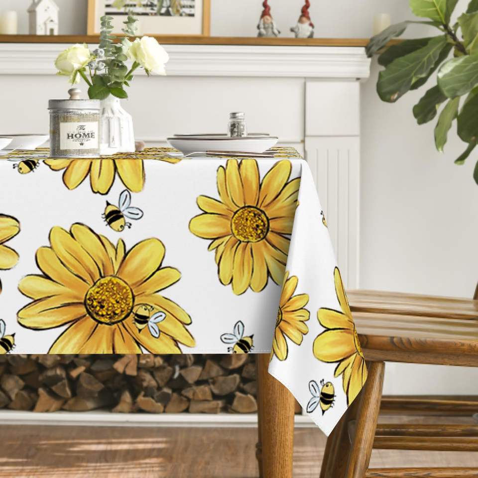 Nappe d'été rectangulaire en polyester Jaune Tournesol Bumble Bee Noir Décoration d'automne Couverture lavable pour fête Hôtel Dîner