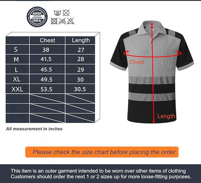 Chemises polo de sécurité réfléchissantes imperméables grande taille pour le travail de nuit, travaux routiers, haute visibilité, noir