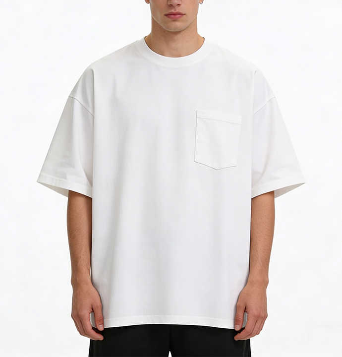T-shirt d'été décontracté style streetwear avec logo brodé personnalisé, en coton respirant, couleur unie, coupe ample, surdimensionné, avec poche poitrine